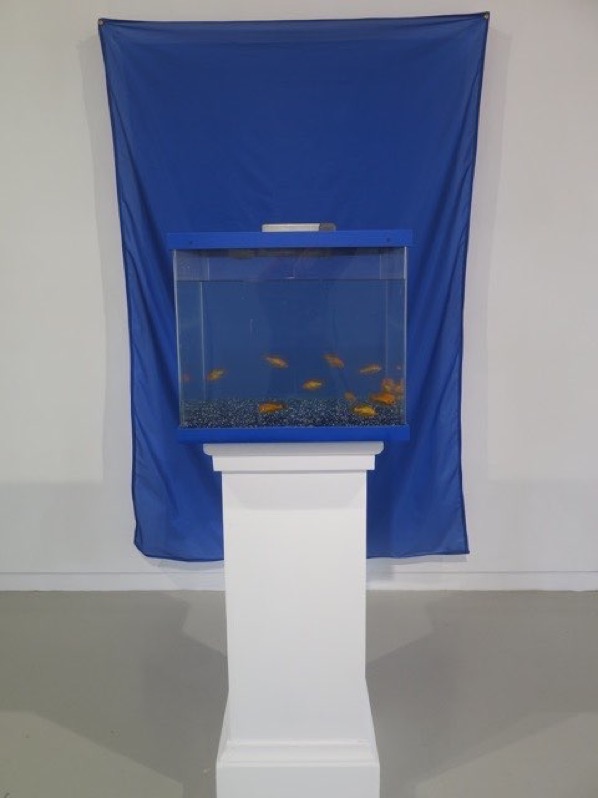(urne, piedestal, drapeau, 12 poissons jaunes)