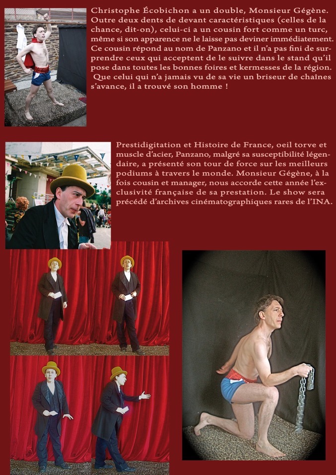 Monsieur Gégène ne fait pas qu’exhiber son cousin Panzano. Il s’applique à illustrer, lors de leurs prestations, l’histoire familiale, en montrant, dans son petit musée ambulant, des photos d’archives.