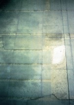 2 (en bas) : “Dépôt” : 2x ( 1,9m x 1,9m). Sablages sur plaques de verre.